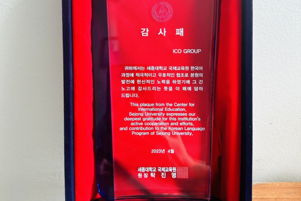 Đại học Sejong (Hàn Quốc) trao tặng kỷ niệm chương cho ICOGroup vì những nỗ lực cho sự phát triển của nhà trường