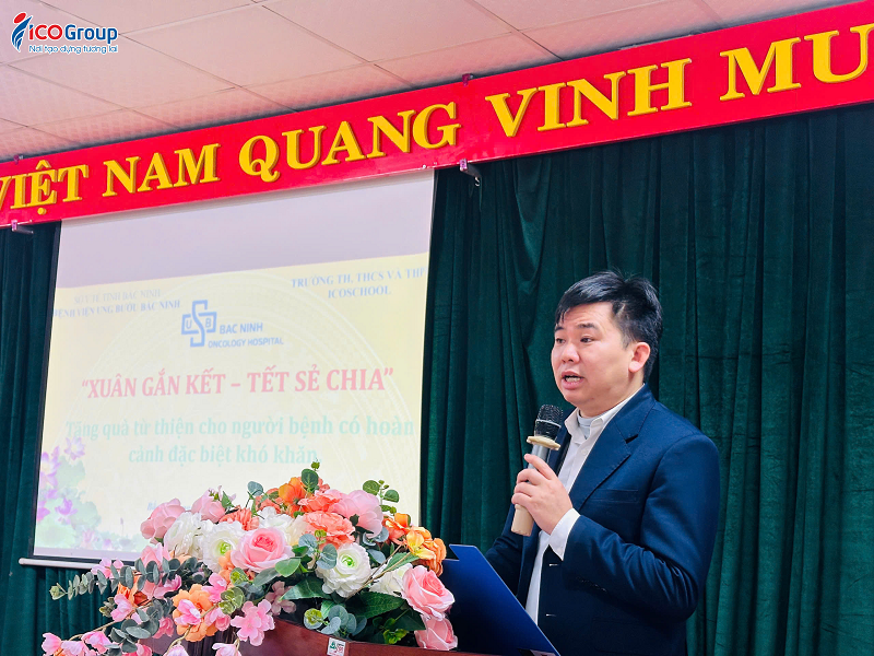 Đại diện Bệnh viện Ung bướu Bắc Ninh ghi nhận và trân trọng cảm ơn sự quan tâm, đồng hành của ICOSchool. Những phần quà tuy không lớn về vật chất nhưng mang ý nghĩa tinh thần sâu sắc, kịp thời động viên người bệnh yên tâm điều trị, vững tin chiến đấu với bệnh tật.