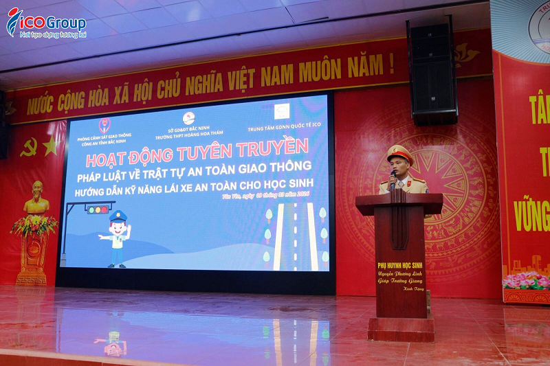 Ngày 09/03/2026, Trung tâm Giáo dục nghề nghiệp Quốc tế ICO phối hợp với Trường THPT Hoàng Hoa Thám và Phòng Cảnh sát giao thông Công an tỉnh Bắc Ninh tổ chức chương trình tuyên truyền pháp luật về trật tự an toàn giao thông và hướng dẫn kỹ năng lái xe an toàn dành cho học sinh nhà trường.